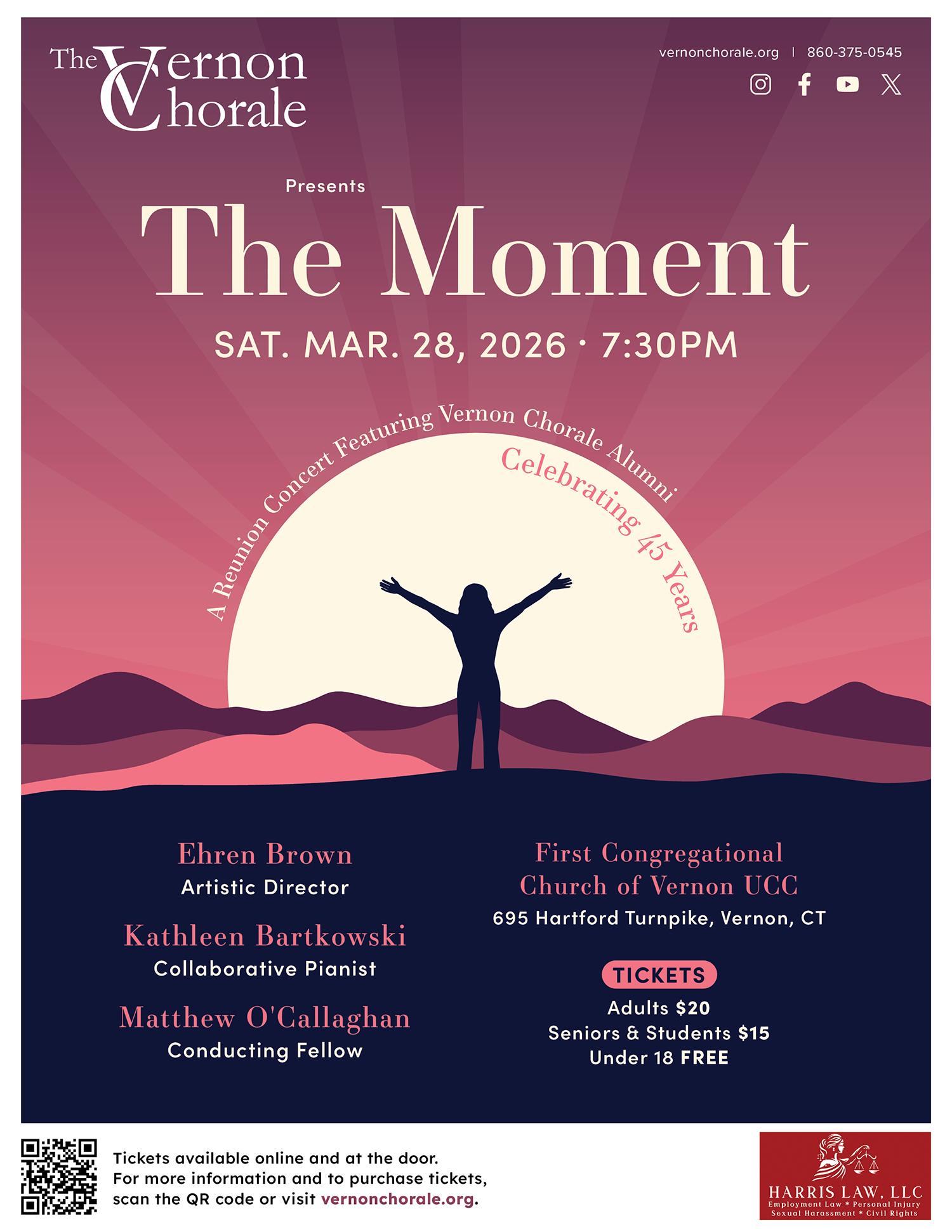 Join The Vernon Chorale in celebrating its 45th Anniversary reunion concert! In "The Moment," we honor the legacy of our past while embracing the beauty of the present. The performance will feature special guest appearances by Chorale alumni.